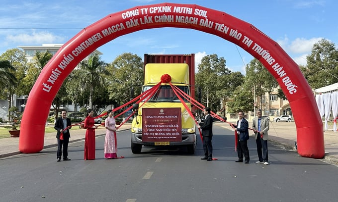 Sáng 3/1, Công ty Cổ phần Xuất nhập khẩu Nutri Soil (Đắk Lắk) đã tổ chức lễ xuất khẩu container mắc ca chính ngạch đầu tiên sang thị trường Hàn Quốc.
