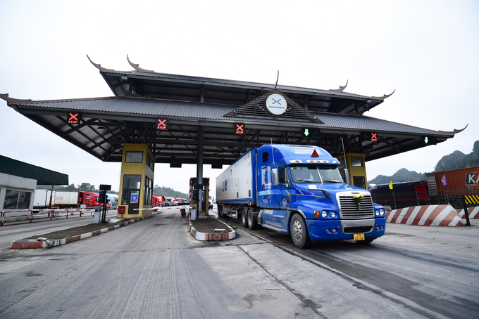 Xe nông sản Việt Nam rời bến Bảo Nguyên ở khu vực cửa khẩu Tân Thanh, chuẩn bị sang Trung Quốc. Ảnh: Tùng Đinh.