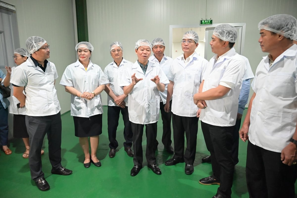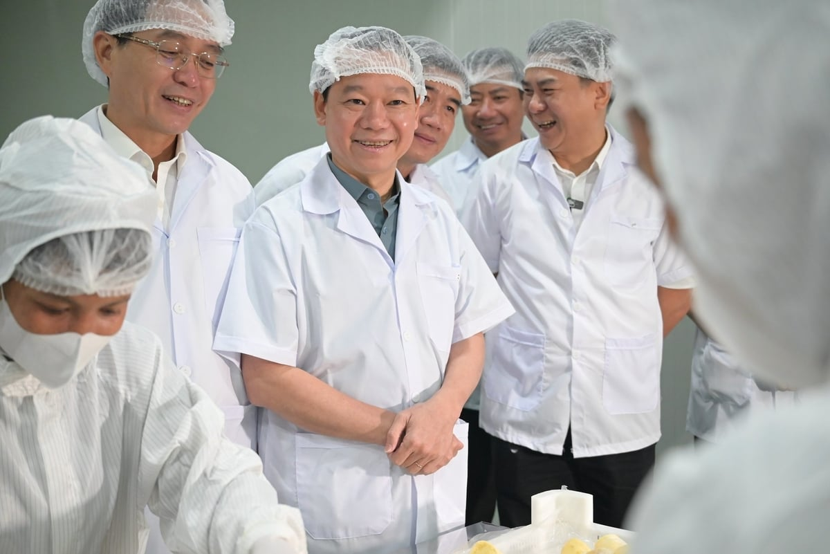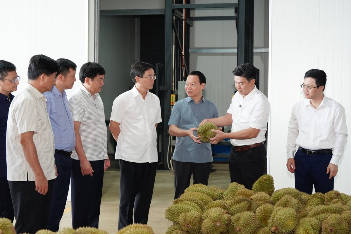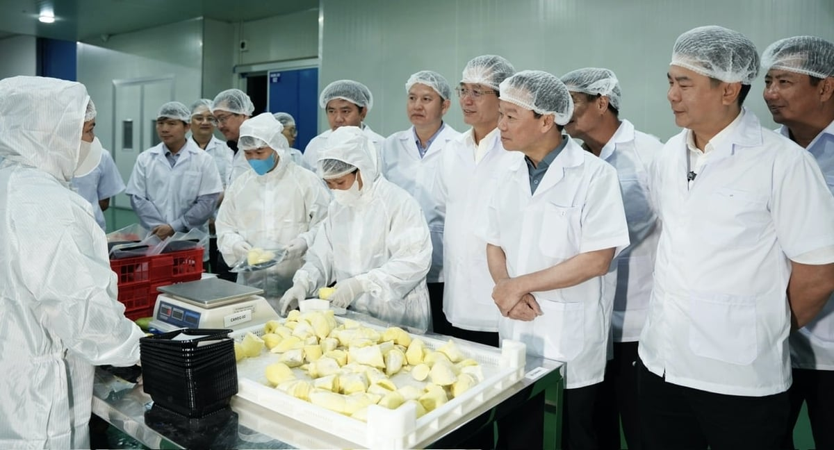 Bộ trưởng Bộ Nông nghiệp và Môi trường Đỗ Đức Duy cùng đoàn công tác đã tham quan quy trình thu mua, tuyển chọn, sơ chế và cấp đông sầu riêng tại nhà máy của Công ty Cổ phần Sầu riêng Tây Nguyên (Sarita).