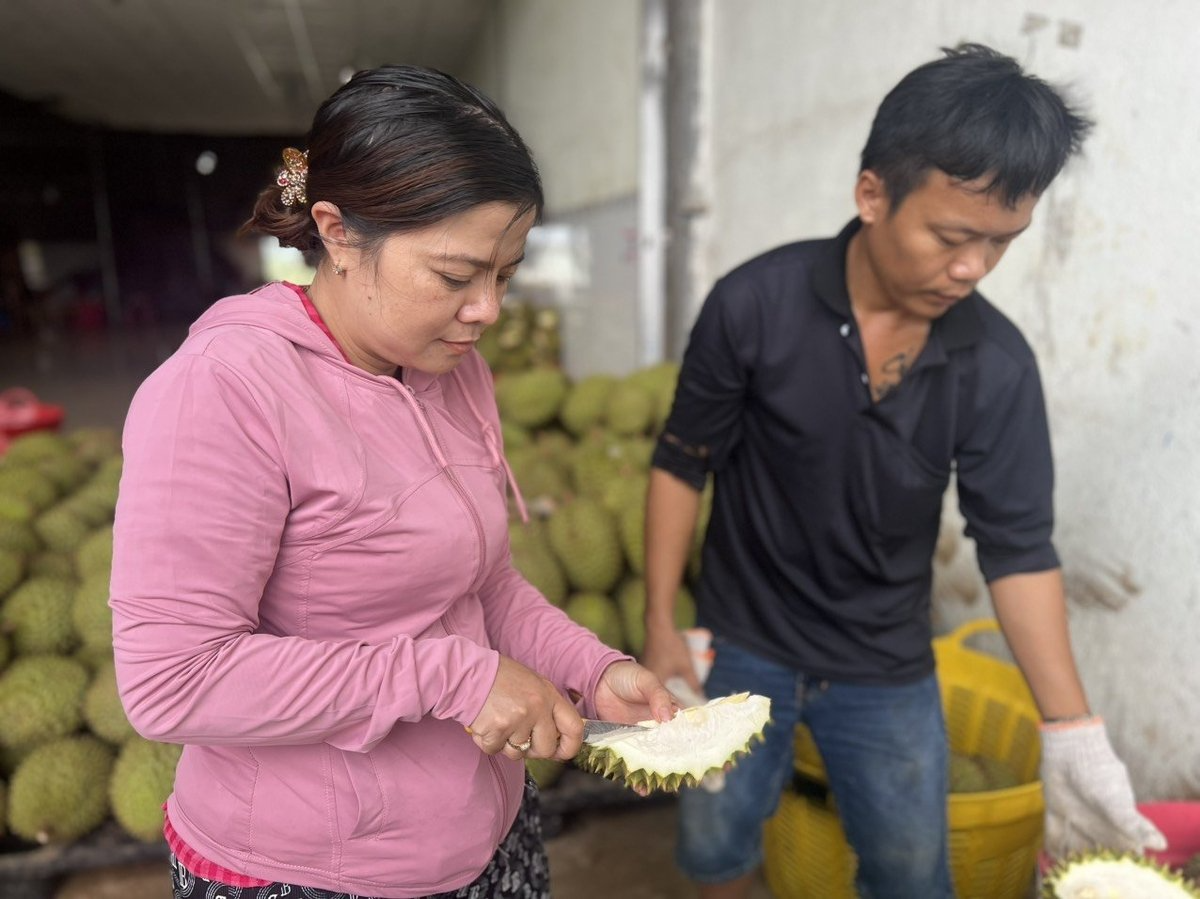Không chỉ nông dân khốn đốn, thương lái cũng rơi vào tình cảnh khó khăn vì chất lượng sầu riêng xuống thấp. Chị Phạm Thị Thu, thương lái lâu năm ở Lâm Đồng cho biết, giá năm nay giảm mạnh, hàng đẹp ngày càng hiếm, nhất là ở các xã phía nam tỉnh Lâm Đồng. “Mưa dầm kéo dài khiến trái bị sượng nước, ngấm ẩm, tôi không dám ôm hàng nhiều. Có chuyến đi cả tuần, chọn nhiều vườn mà gom không nổi chục tấn đạt chuẩn”, chị Thu nói thêm.